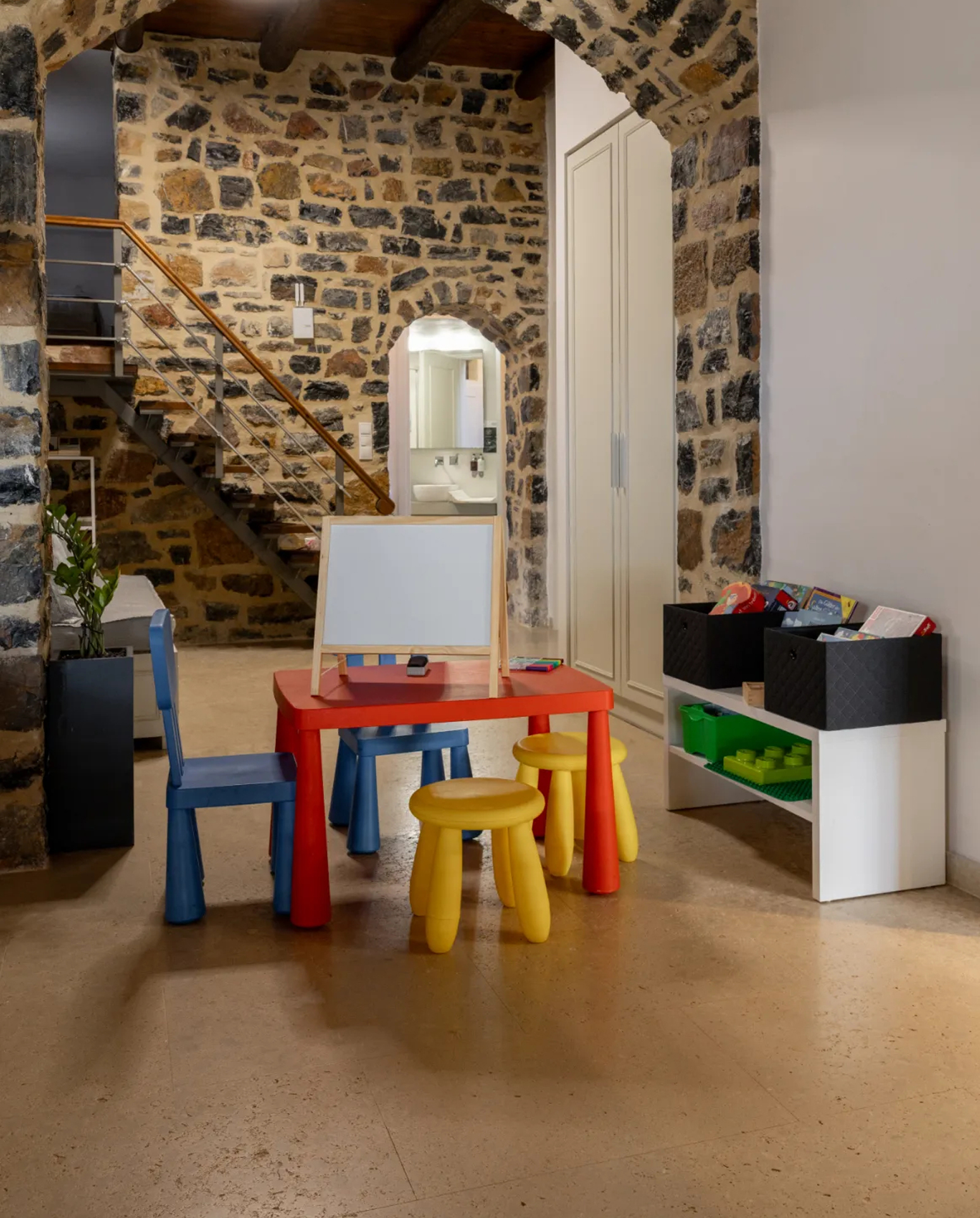 We have arranged the outdoor and indoor spaces with plenty of games so that our little friends can take a break from phones and tablets, play, run, create, and forget about technology, even for a while. We want them to experience summer as we did as children in Crete — freely, carefreely, and with lots of laughter.